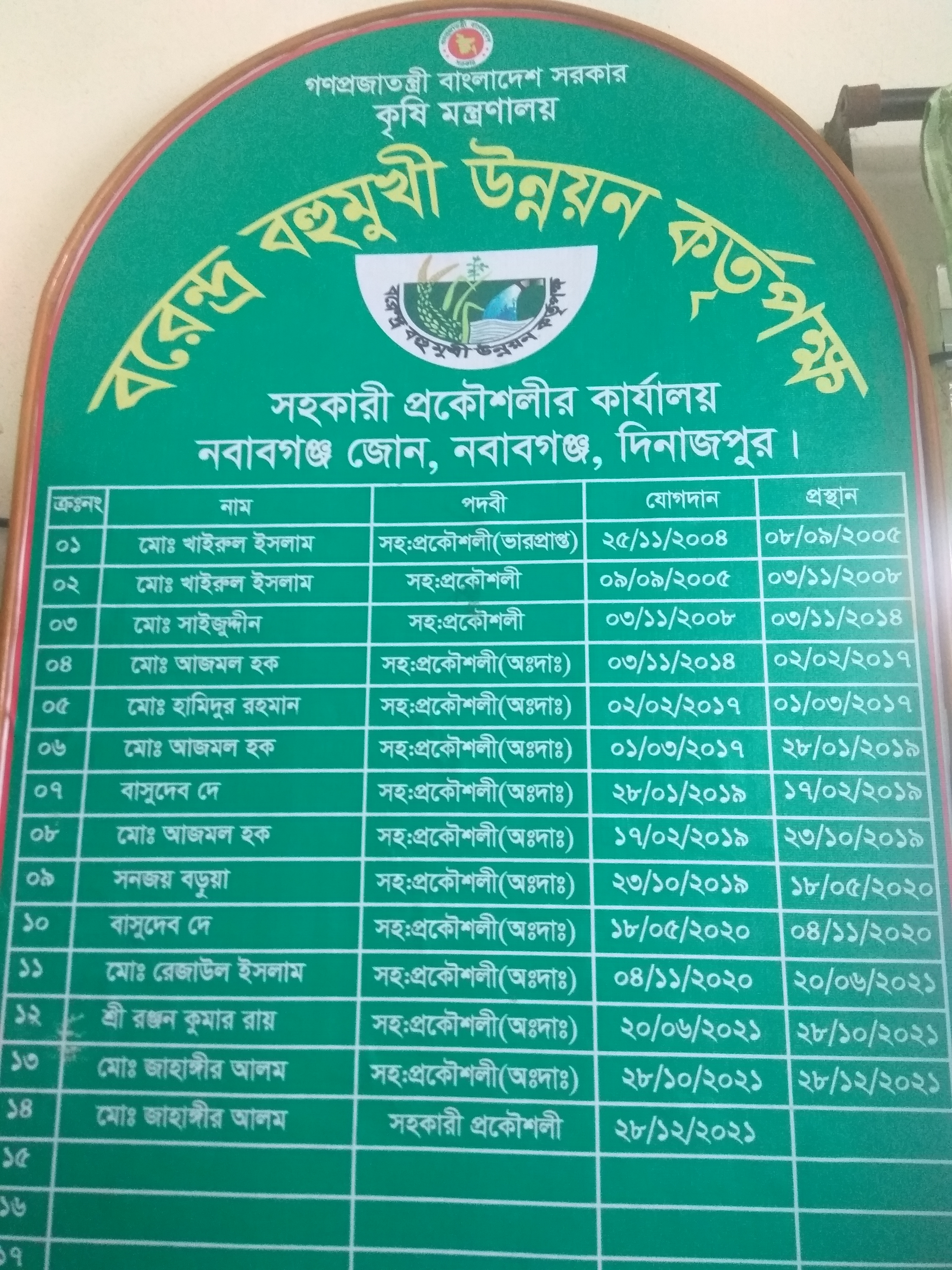 তিনি বর্তমানে বিএমডিএ চিরিরবন্দর জোন, দিনাজপুরে কর্মরত আছেন ।